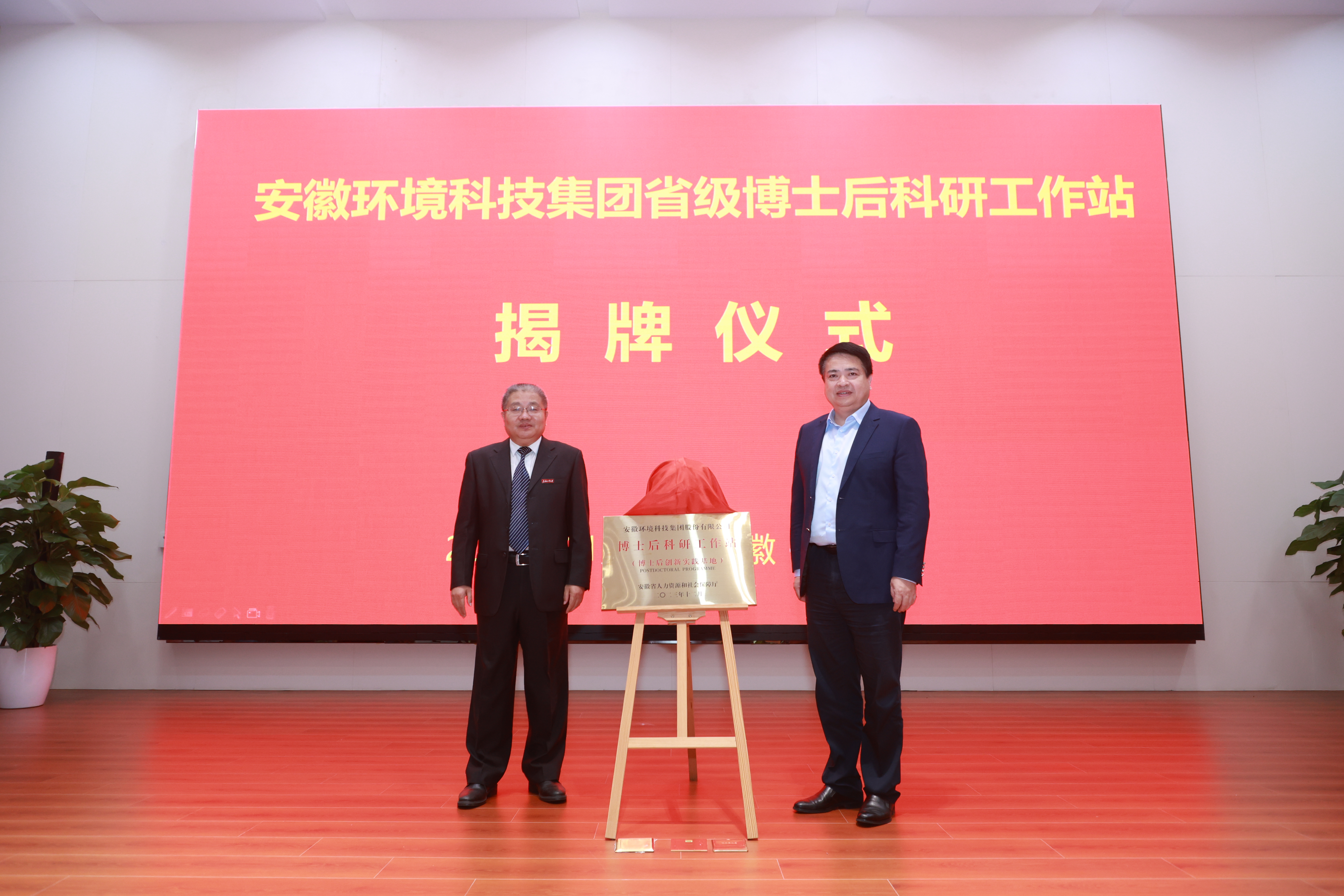 11月18日下午,安徽环境科技世界杯网址大全举行“安徽省博士后科研工作站”揭牌仪式。省生态环境世界杯网址大全党委书记、董事长罗太忠出席揭牌仪式并讲话。