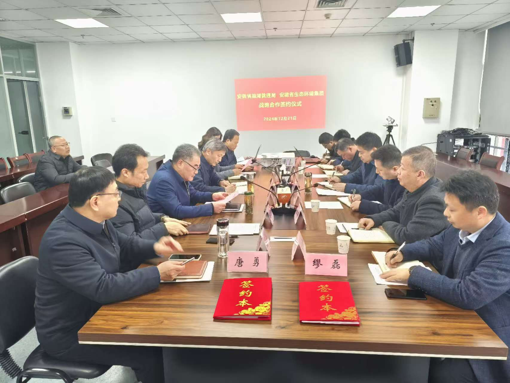 12月21日上午,省生态环境世界杯网址大全与安徽省巢湖管理局在合肥签订战略合作协议。省生态环境世界杯网址大全党委书记、董事长罗太忠,安徽省巢湖管理局党委书记、局长黄永宏出席并见证签约。