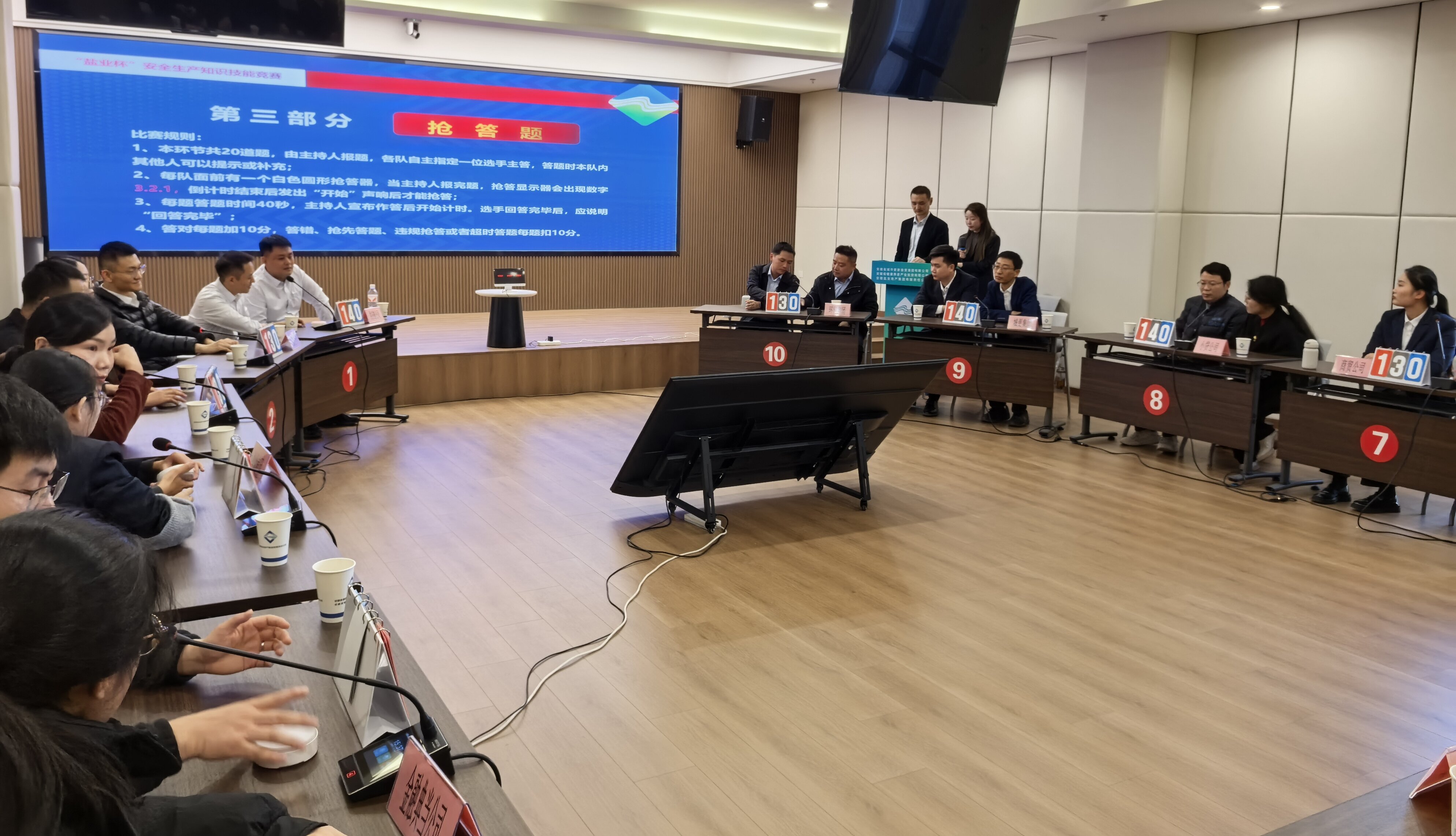本次竞赛以“人人讲安全,个个会应急——查找身边安全隐患”为主题,聚焦政策法规和实践操作,旨在全面提升干部职工对危险、有害因素的辨识能力与应急处置技能,坚决防范生产安全事故发生。经过前期筹备,来自世界杯网址大全所属企业的10支代表队同台竞技,各代表队冷静答题、奋勇争先。“各显身手”个人必答和“齐心协力”团队必答环节稳扎稳打,展现扎实知识储备;“争分夺秒”抢答环节分秒必争,考验快速反应能力;“勇攀高峰”风险环节深入分析,实现理论实践深度融合。尤其在风险题环节,选手们根据实际案例查风险、找隐患,展现了对政策法规知识的准确理解和解决实际问题的良好能力。