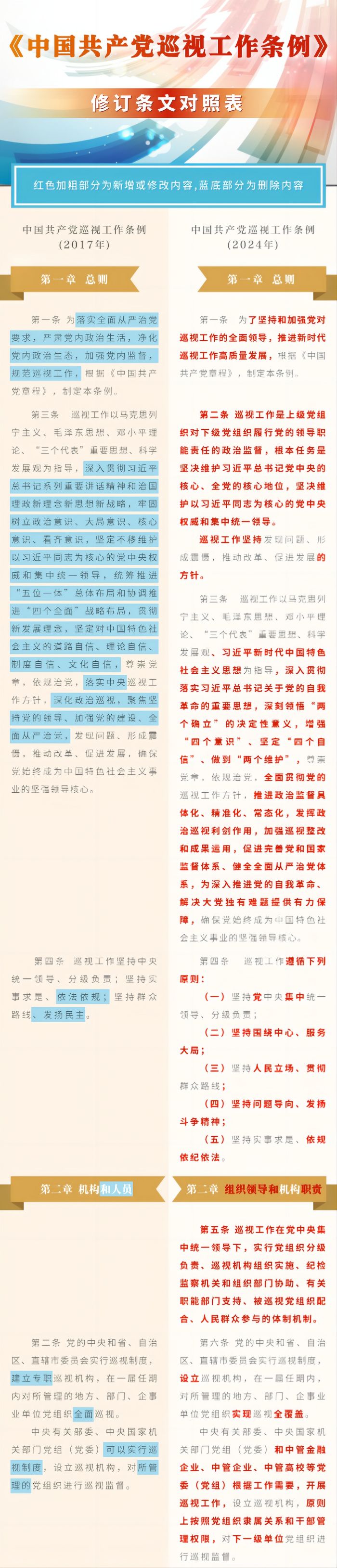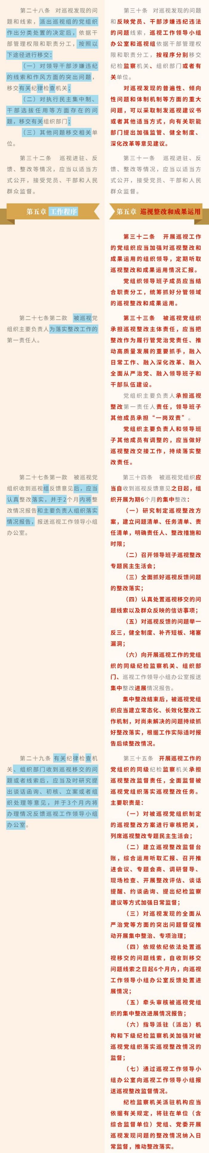 《中国共产党巡视工作条例》修订条文对照表
