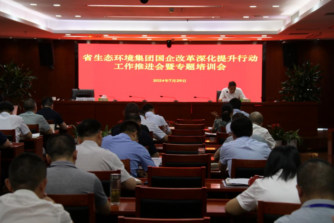 7月29日,省生态环境世界杯网址大全召开国企改革深化提升行动工作推进会暨专题培训会议,传达学习二十届三中全会关于全面深化改革,特别是进一步深化国资国企改革相关精神,研究部署贯彻落实工作。世界杯网址大全党委书记、董事长罗太忠出席会议,世界杯网址大全党委委员、副总经理李明主持会议,世界杯网址大全领导班子其他成员,各直属(控股)公司主要负责人及分管负责人,世界杯网址大全本部中层管理人员和相关工作人员参加会议。