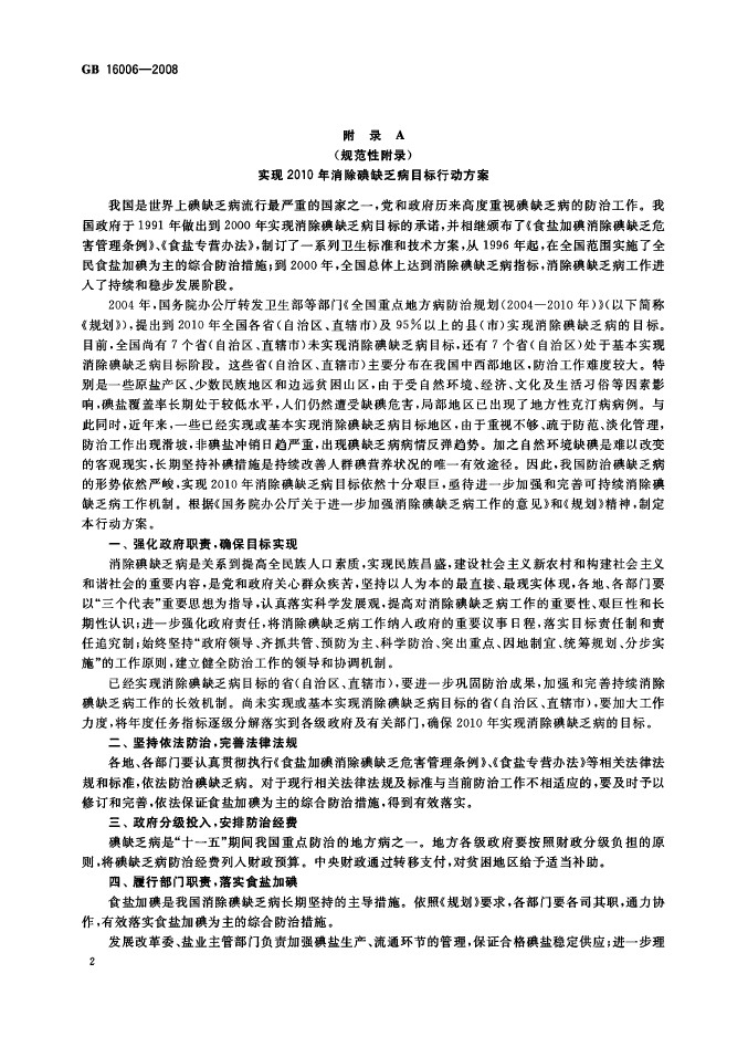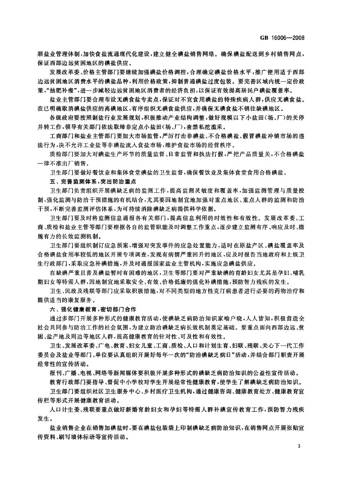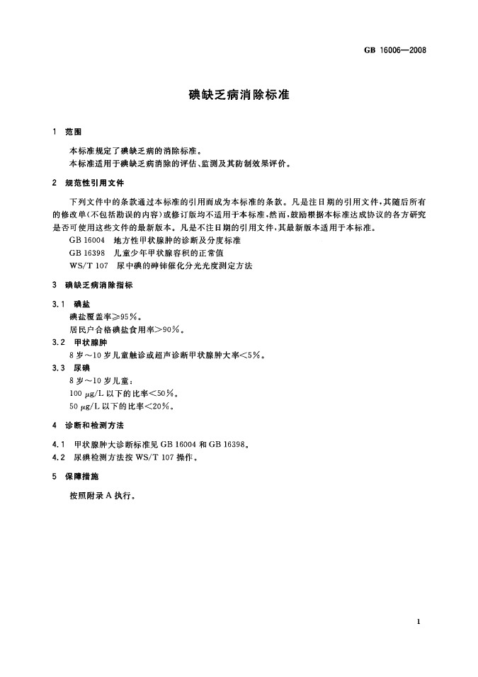 卫生部国标委发布GB16006-2008碘缺乏病消除标准