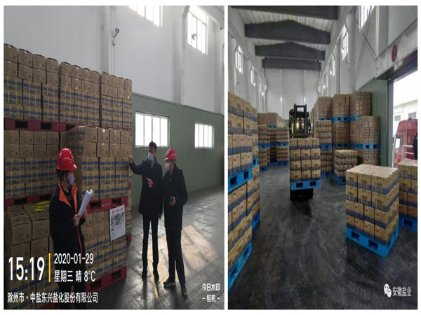 在抗击新冠肺炎、保障市场供应的一个多月以来,安徽盐业发展有限公司党委带领全省盐业战线广大干部职工上下齐心,坚守岗位,同舟共济,在做好疫情防控工作的同时,克服运输紧张、雨雪天气、交通管制等不利因素,抓调运、充库存、保供应。2020年1月26日至2月27日,全省累计购进各类盐品19537.61吨,其中小包装食盐15870.56吨、大包装食盐2625.7吨、大包装工业盐1041.35吨;期间全省累计配送各类盐15205.39吨,其中小包装食盐11782.28吨、大包装食盐2189.81吨、大包装工业盐1233.3吨。