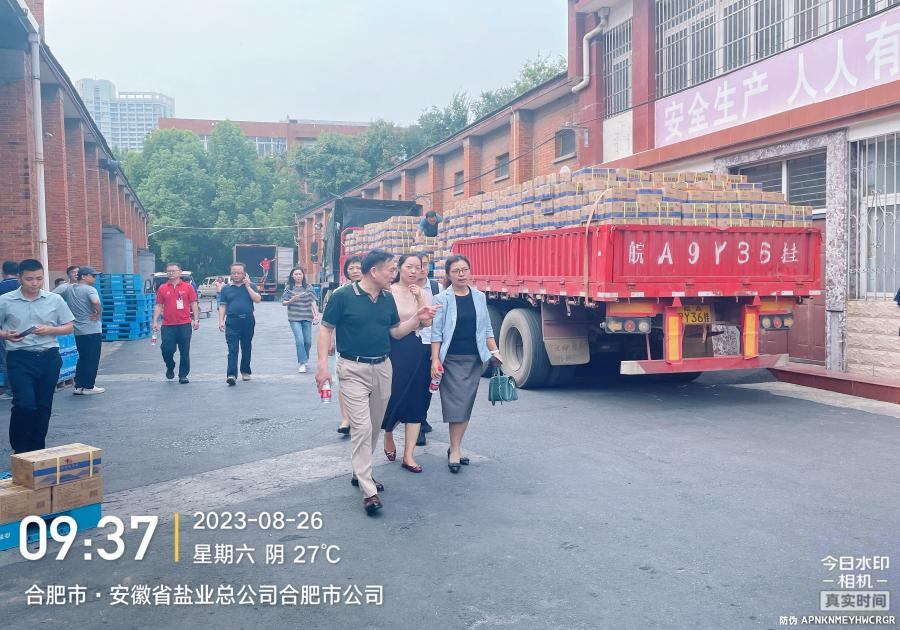 8月26日上午省经信厅戴琳琳处长、市经信局总工郭梅赴合肥市公司现场调研,详细了解两日来盐品销售及储备盐库存情况,对合肥盐业在抢购期间应急保供、稳定市场、充足储备盐库存工作给予了充分肯定,同时要求合肥市公司继续以保民生为首要任务,密切关注市场动态并及时上报。