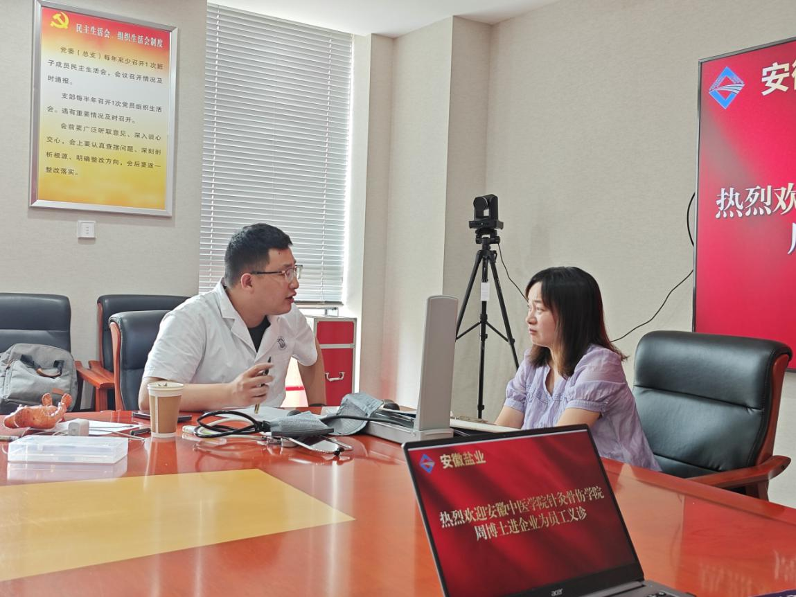 为了提高广大员工的健康意识,近日,盐业发展公司工会邀请了安徽省中医院针灸骨伤学院周东博士开展了员工免费问诊服务。