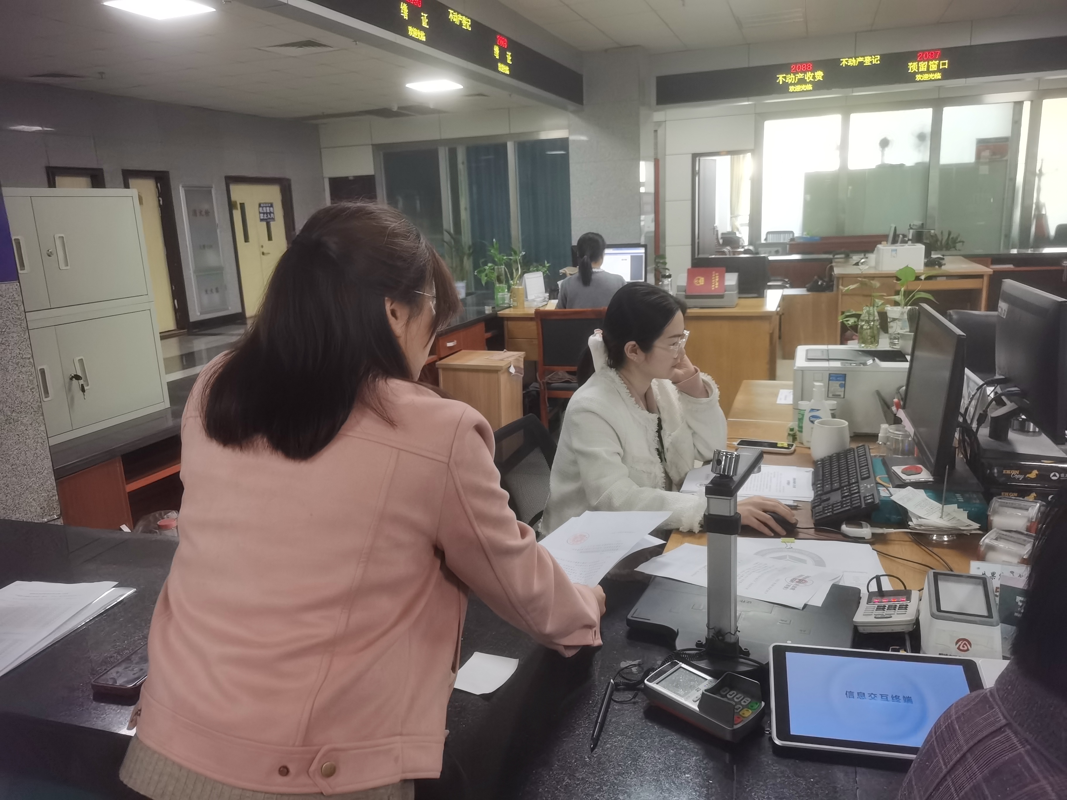 图为小贷公司清收人员和律师在桐城市不动产中心排查被执行人财产信息。