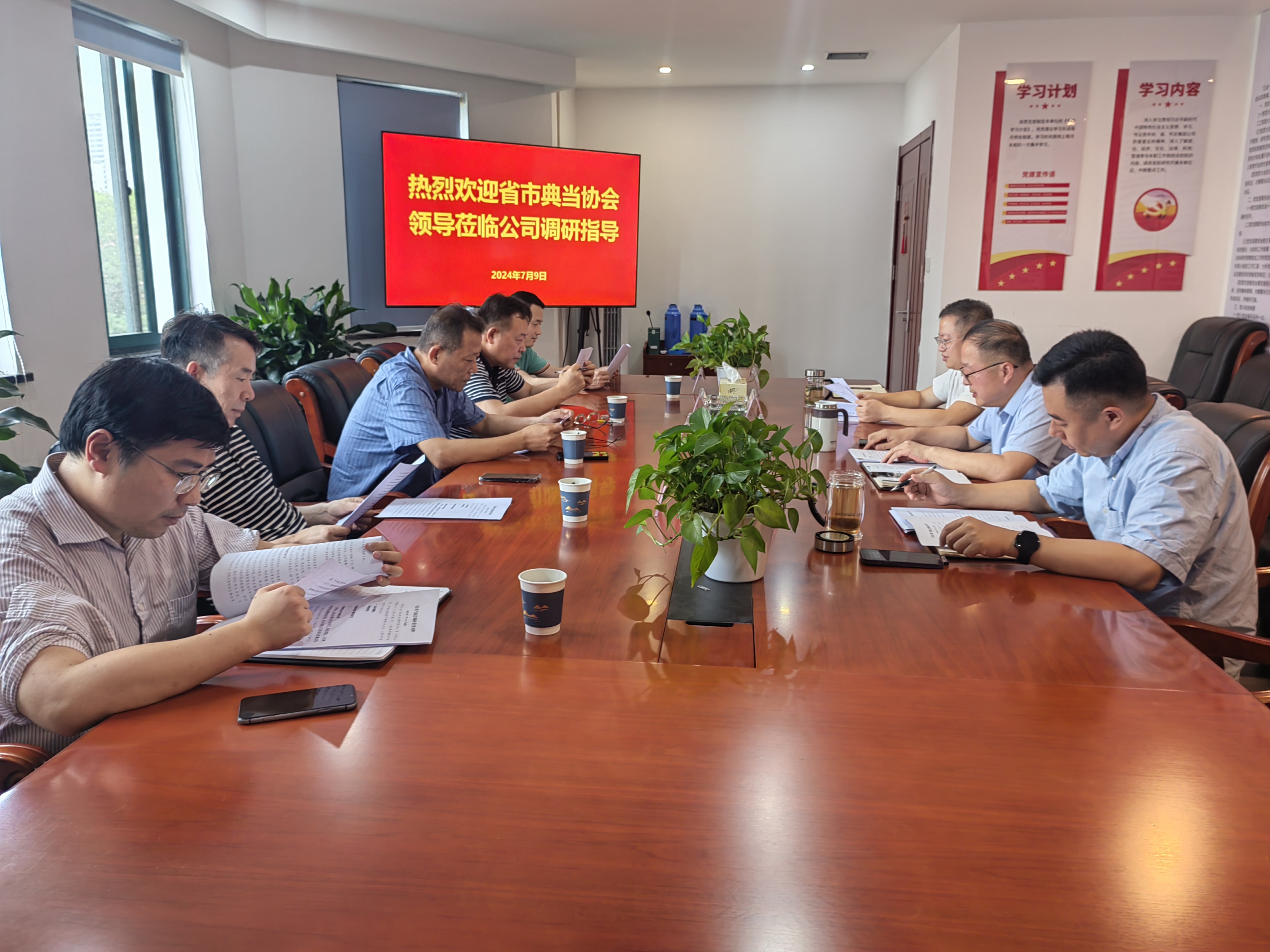 7月9日,省典当协会会长薛永飞、市典当协会会长刘伟一行赴徽盐典当公司开展调研指导活动,公司总经理杨洪及相关负责同志参加座谈会。