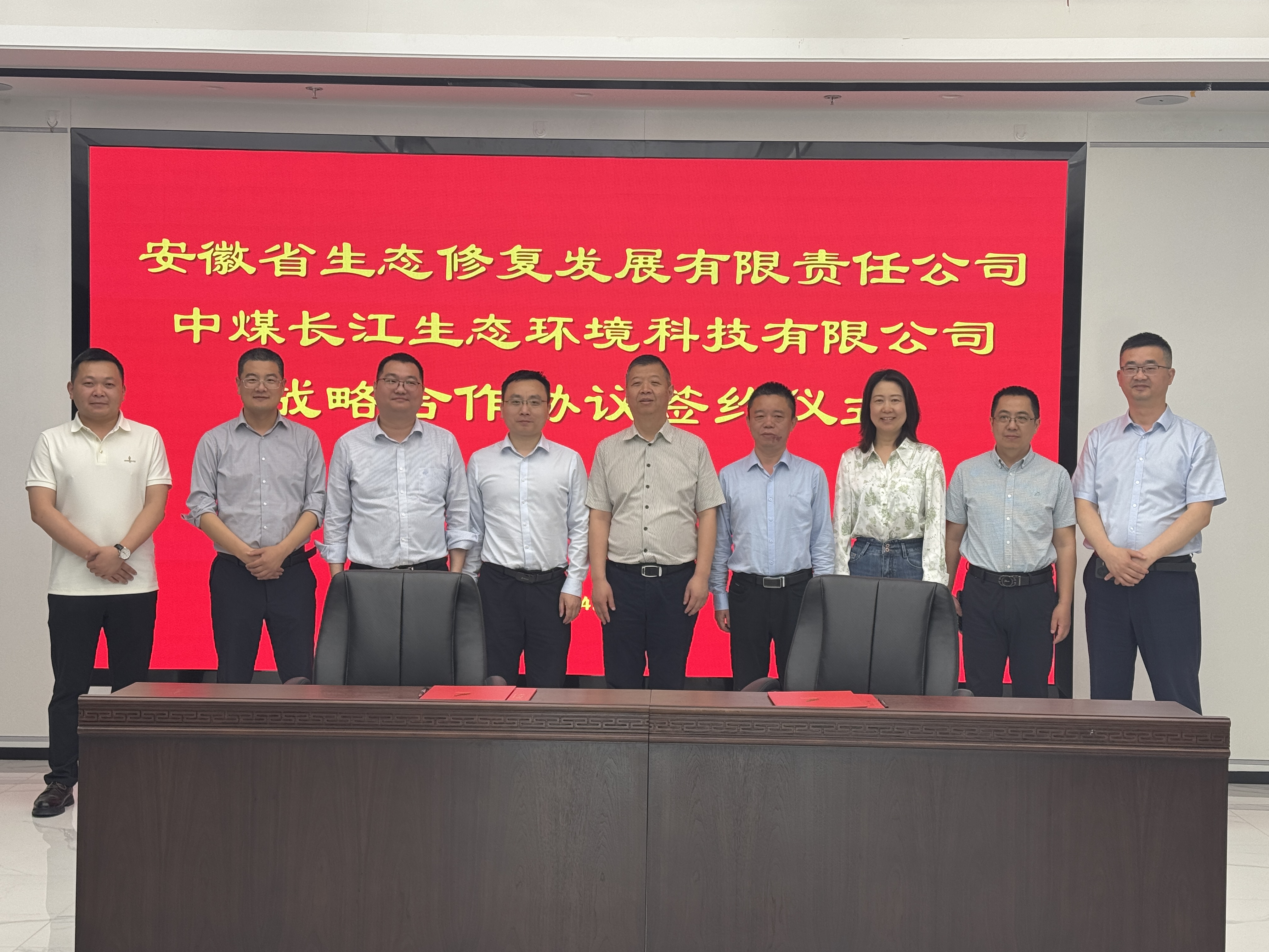 生态修复公司执行董事总经理程群、中煤长江生态环境科技有限公司总经理汤楷代表双方签订合作协议。