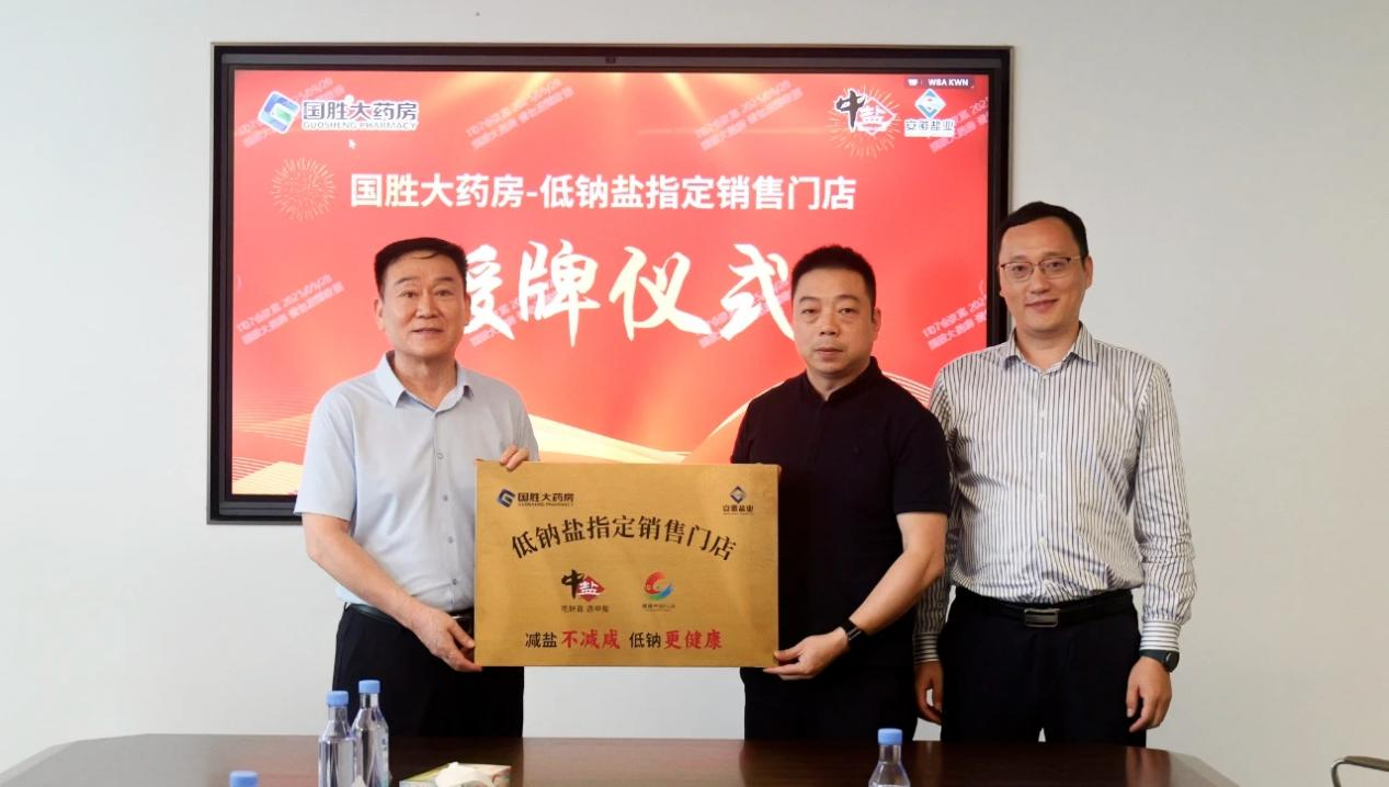 仪式现场,双方围绕“高盐饮食危害防控”与“低钠盐全民推广路径”展开深入研讨,达成了“政策同向、使命同频”的战略共识,共同致力于将健康干预覆盖至家庭单元。随后,安徽省盐业世界杯网址大全与国胜大药房签署了战略合作协议,安徽省盐业世界杯网址大全与中盐东兴公司共同向国胜大药房授予“中盐低钠盐指定销售门店”牌匾,宣告低钠盐的健康推广与销售在医药渠道正式启动。